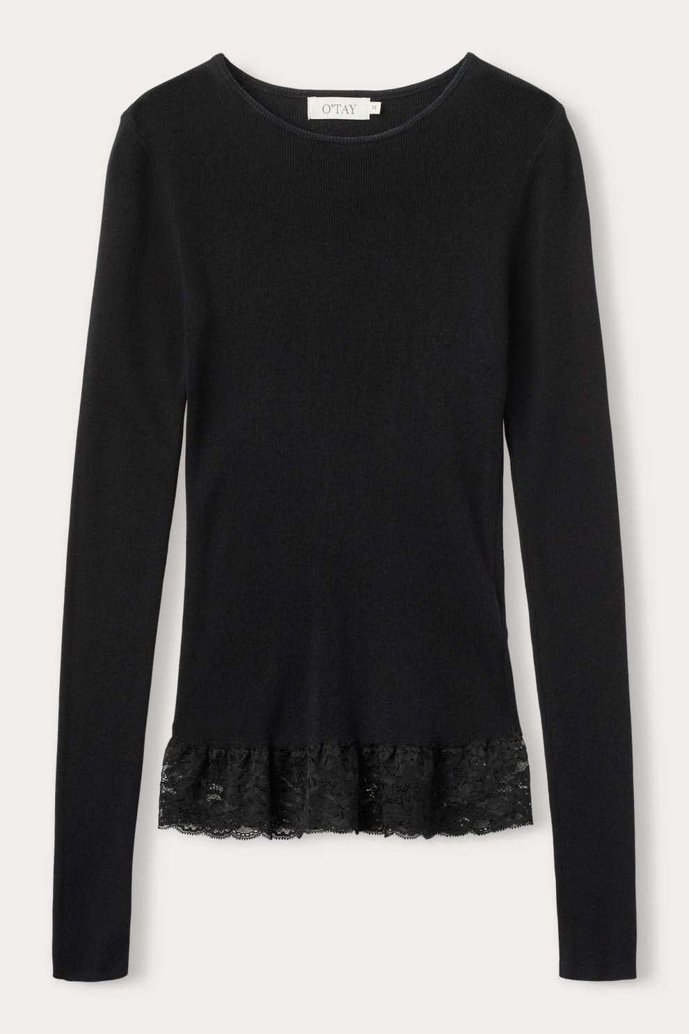 Ida blouse är en elegant långarmad blus i lyxig blanding av 85% silke och 15% cashmere, vilket ger otroligt mjukhet mot huden. Den feminina detaljen med spetskant ger blusen en raffinerad och romantisk touch. Perfekt til både fest och vardag när du önskar en sofistikerad och delikat look.